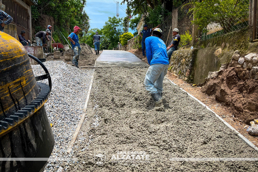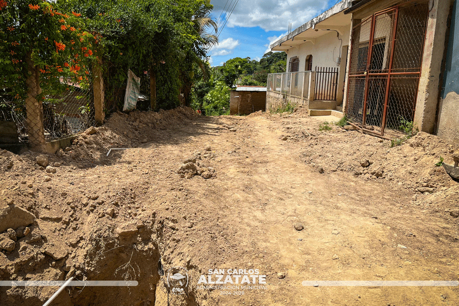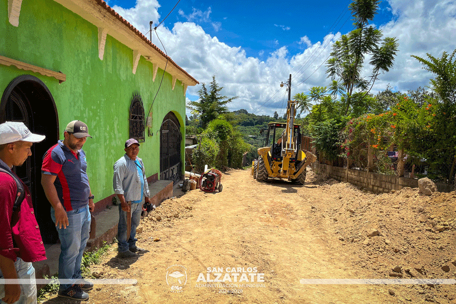 la Municipalidad de San Carlos Alzatate, Jalapa. ejecuta la ampliación de drenaje y pavimentación en Barrio Camelias Sector Salida a Tabacalito.