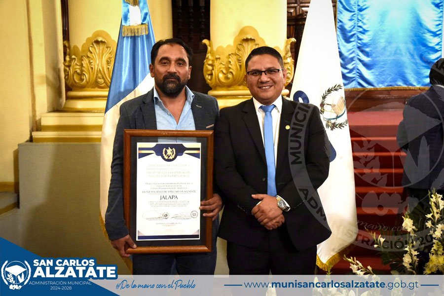 Entrega de reconocimiento a la Municipalidad de San Carlos Alzatate