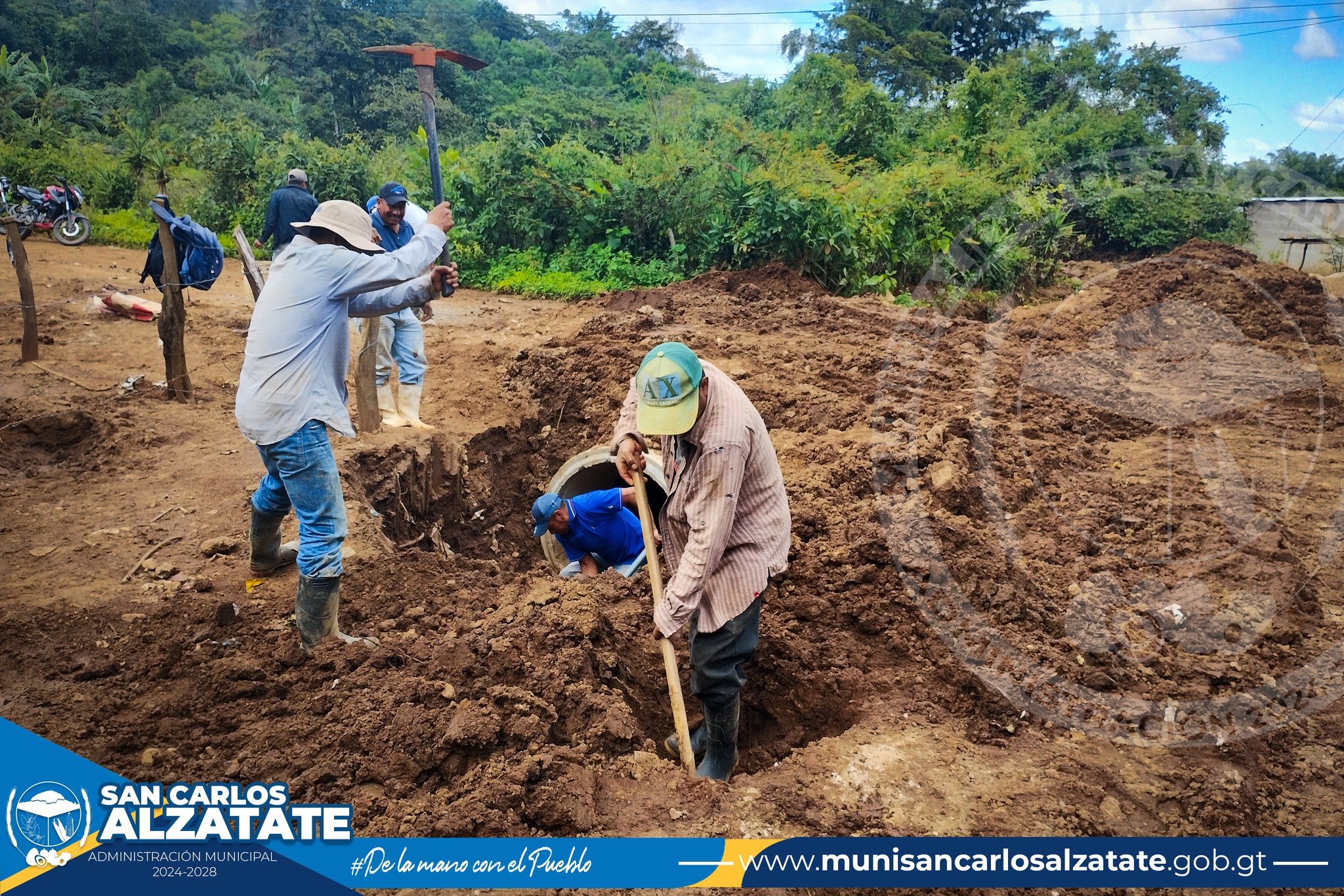 Colocación de tubos para tragantes de agua en Aldea Sabanetas