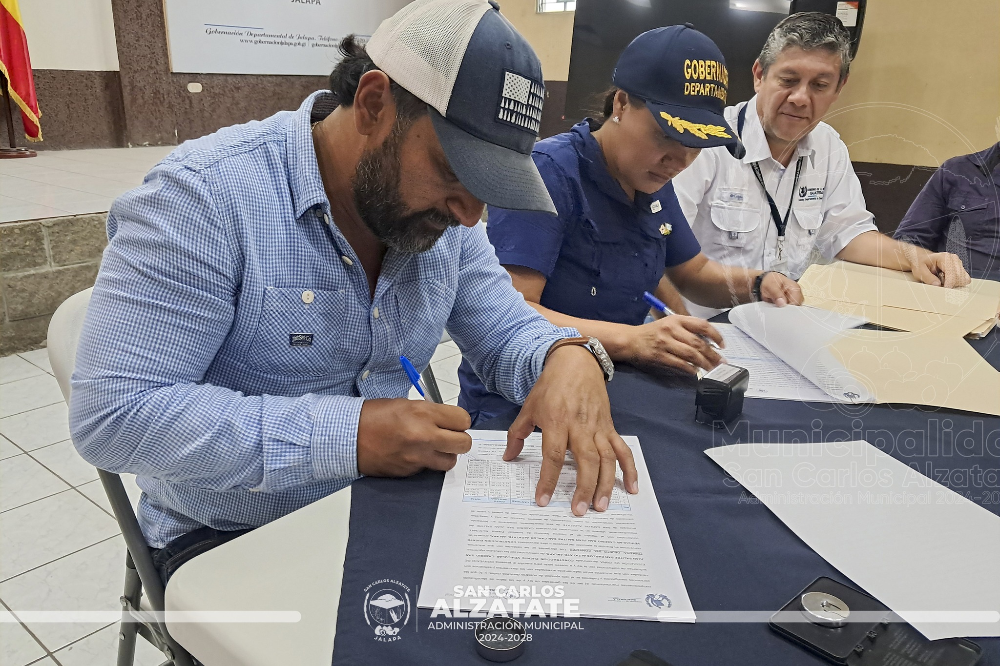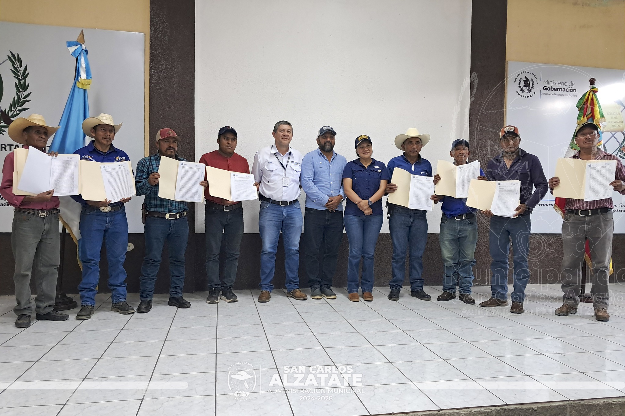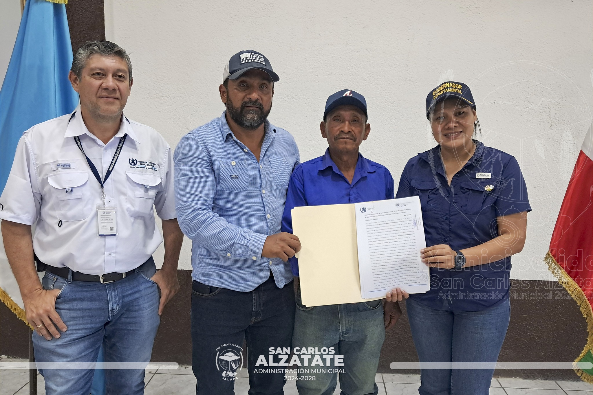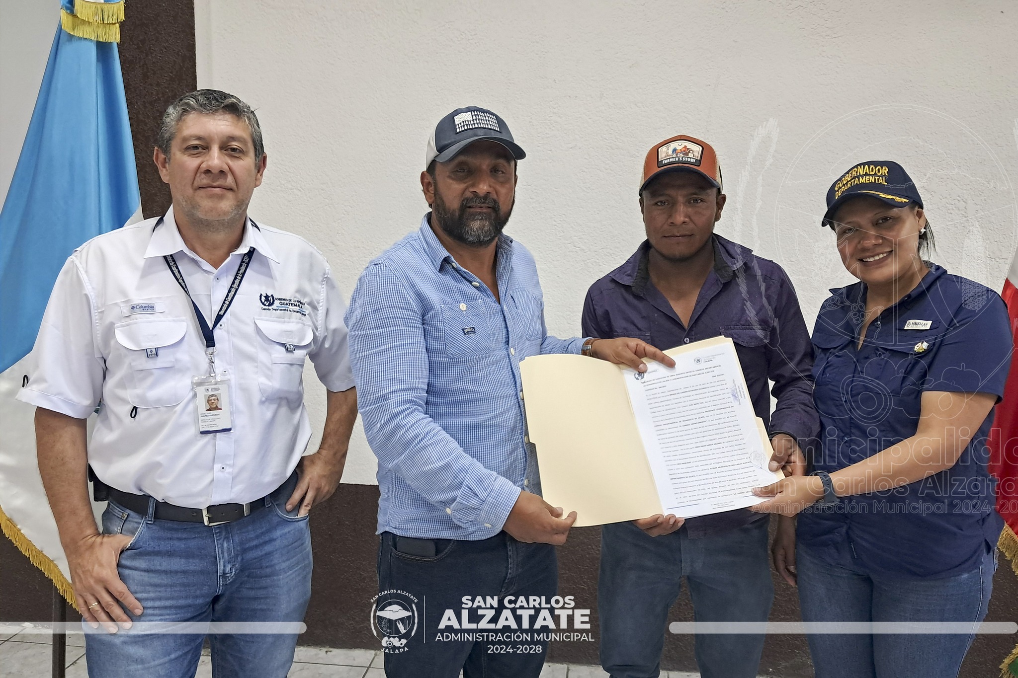 Ayer, el alcalde Fredi García, junto a la gobernadora departamental Brenda Raymundo y representantes de nueve COCODE beneficiados, firmaron los primeros convenios de proyectos para San Carlos Alzatate.