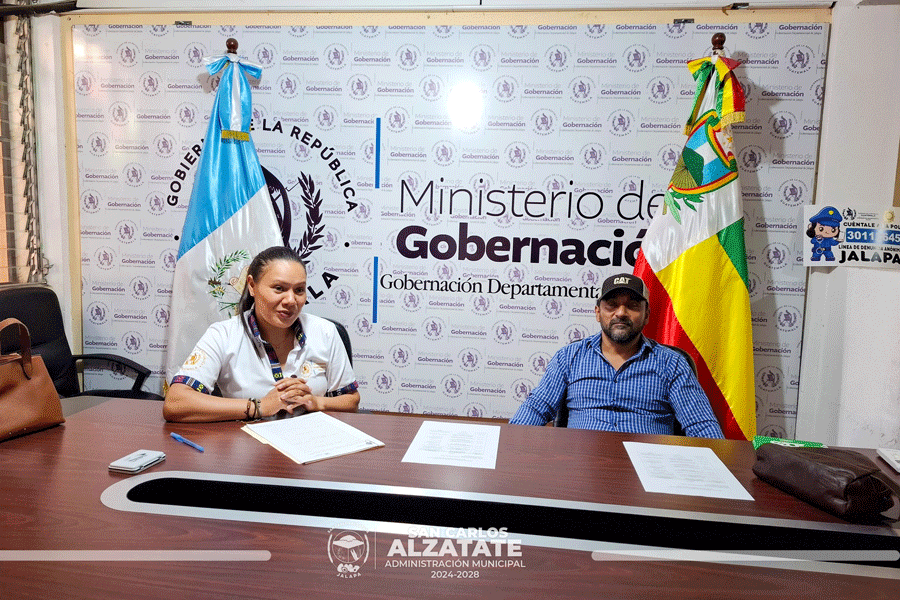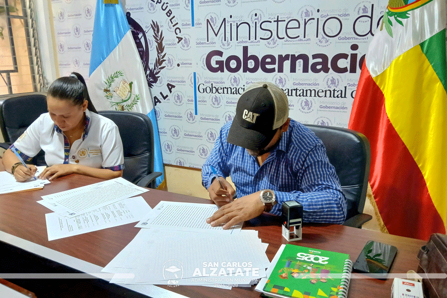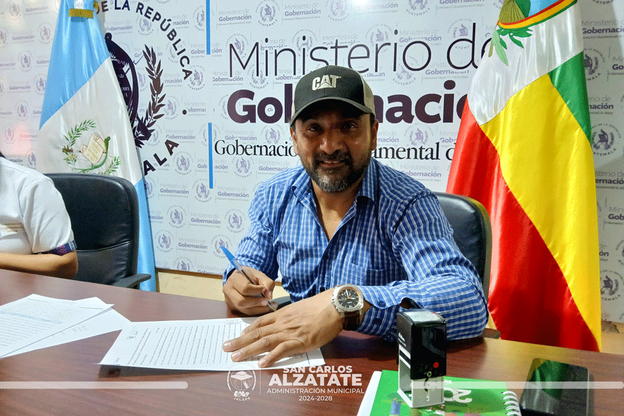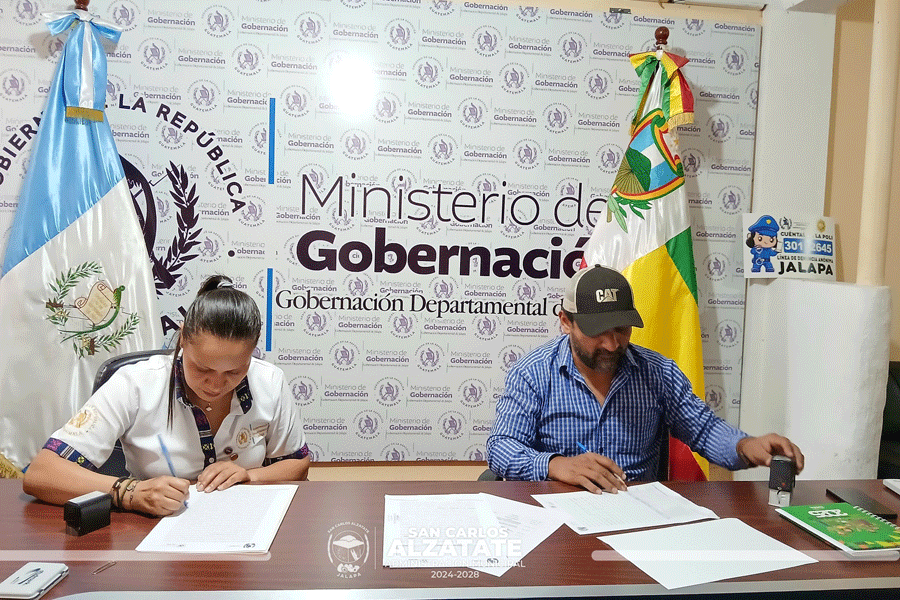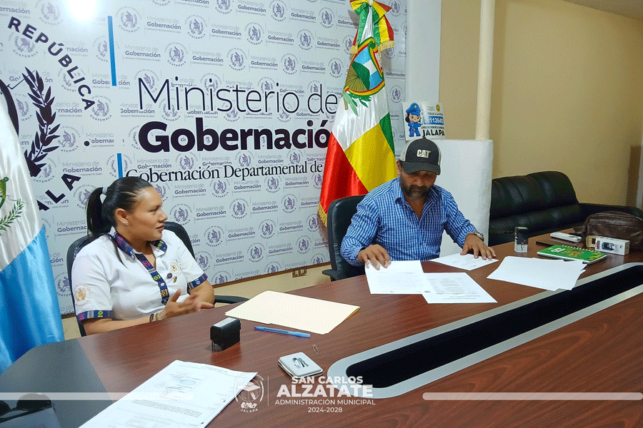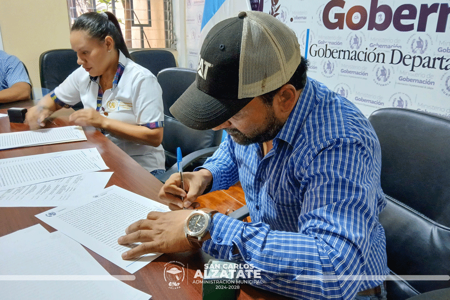El señor alcalde Fredi García, junto a la gobernadora departamental de Jalapa, llevaron a cabo la firma del convenio para la ejecución del Proyecto de Agua Potable en Barrio Entre Ríos, San Carlos Alzatate.