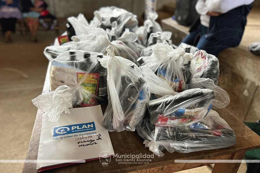 Entrega de insumos a familias de niños afiliados a sus programas en Aldea Sabanetas